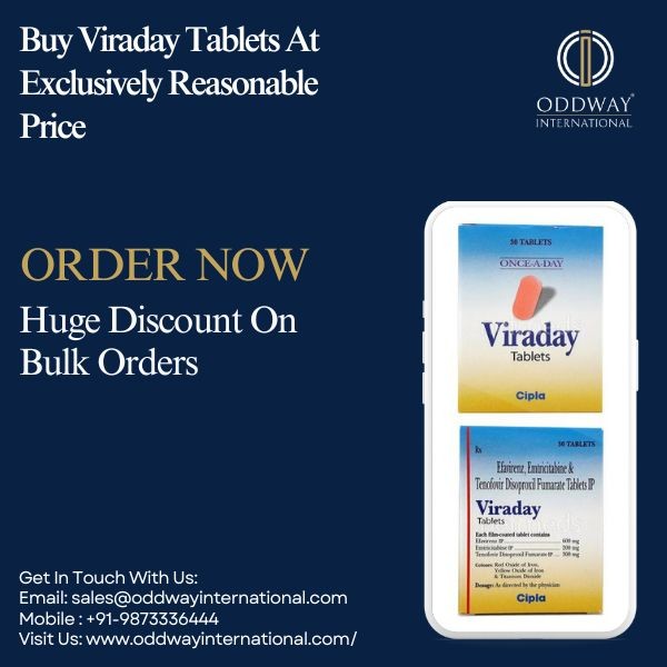 Oddway International, a leading specialty pharmacy that operates globally, is available to assist you. Our competitive pricing options cater to both bulk and individual purchases, ensuring convenient access to vital HIV/AIDS medication. If you are buying in large quantities or just need one pack, our competitive prices and efficient shipping services make it easy and convenient to get what you need. Take advantage of our exclusive deals on Viraday Tablet, currently available at reduced prices.