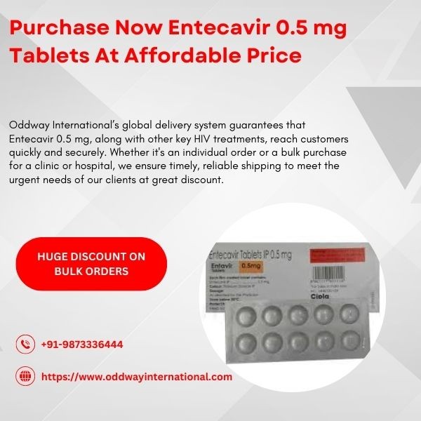 Oddway International, a leading specialty pharmacy that operates globally, is available to assist you. Our competitive pricing options cater to both bulk and individual purchases, ensuring convenient access to vital HIV/AIDS medication. If you are buying in large quantities or just need one pack, our competitive prices and efficient shipping services make it easy and convenient to get what you need. Take advantage of our exclusive deals on Entecavir 0.5 mg Tablets, currently available at reduced prices.