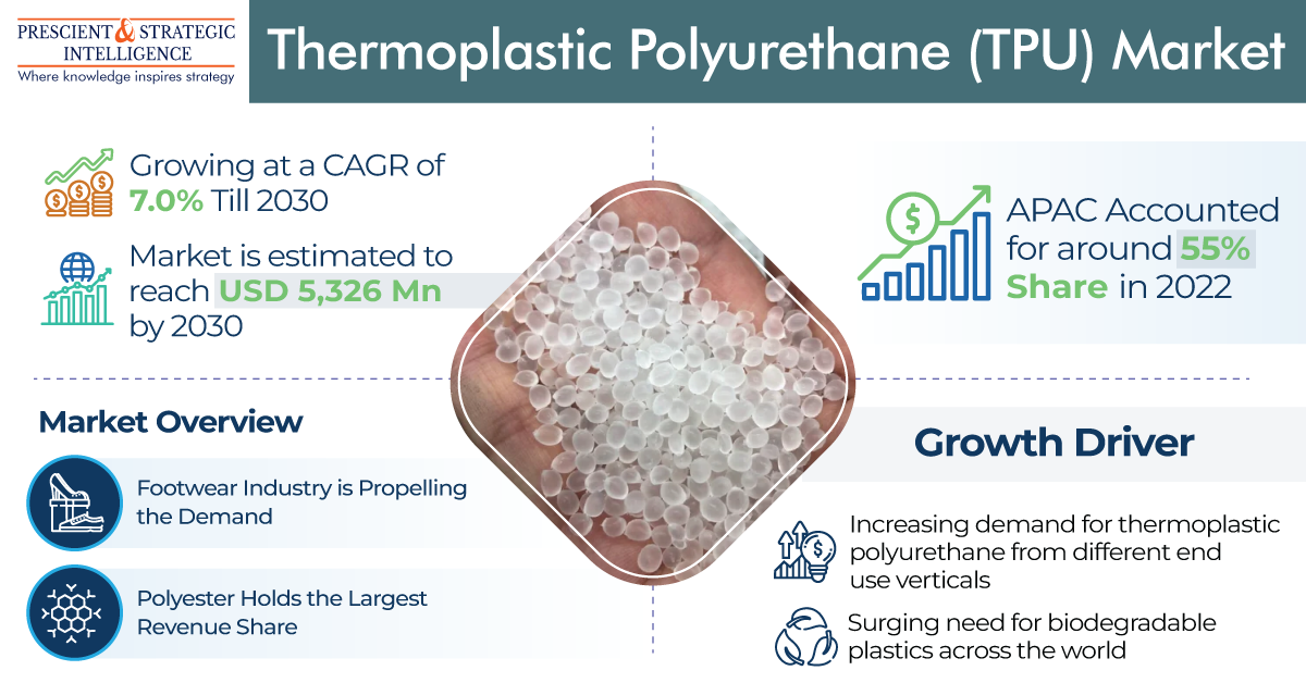 As mentioned by P&S Intelligence, the thermoplastic polyurethane market will propel at a rate of 7.0% in the years to come, to reach USD 5,326 million by 2030. This is mainly credited to the extensive use of TPU in vehicle parts and a range of medical devices.
