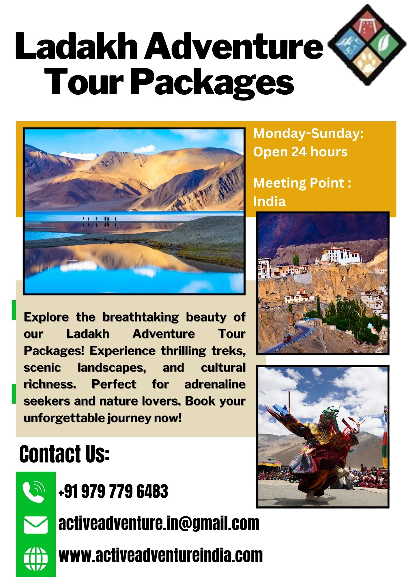 Discover the unexplored natural terrain beauty of Ladakh with our special Ladakh Adventure Tour Packages. Choose great trekkings, bike and sightseeing tours in this beautiful area. See the alpine views, calm water, hundred-year-old monasteries and go bungee jumping, para-gliding and rafting. Visit - https://www.activeadventureindia.com/tours/ladakh-adventure/