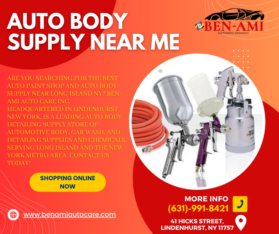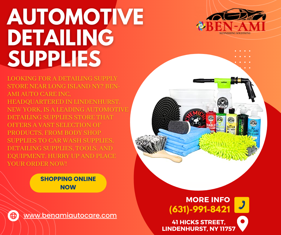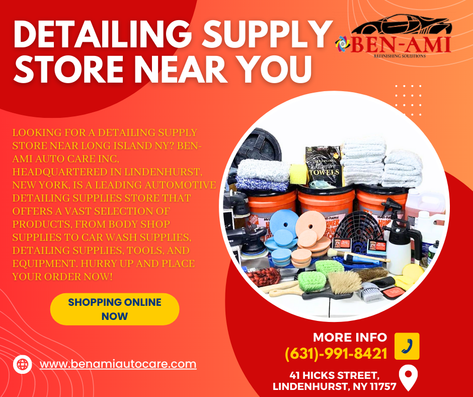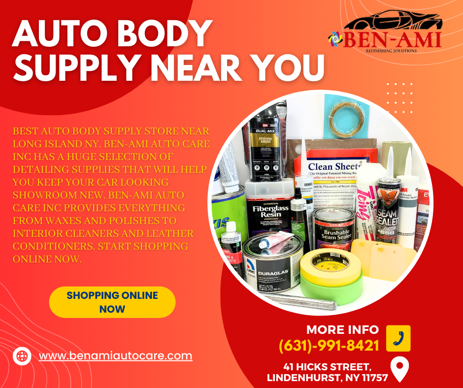 Best Auto Body Supply Store Near Long Island, NY. Ben-Ami Auto Care Inc. has a huge selection of detailing supplies that will help you keep your car looking showroom new. They provide everything from waxes and polishes to interior cleaners and leather conditioners. Start shopping online now.