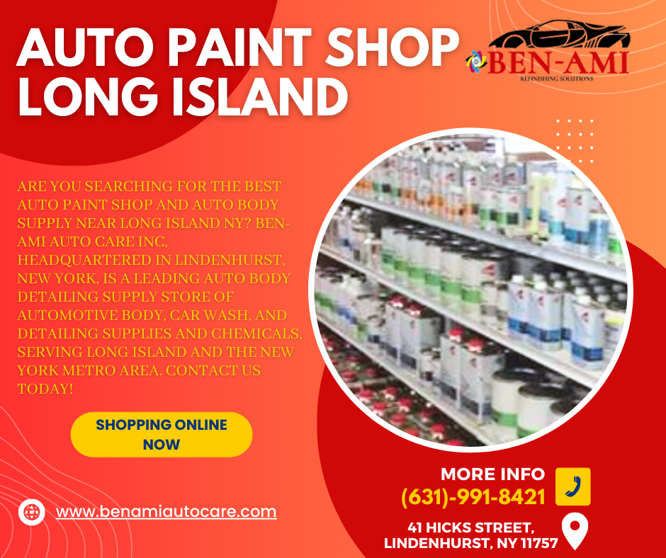 Are you searching for the best Auto Paint Shop and Auto Body Supply Near Long Island NY? Ben-Ami Auto Care Inc., headquartered in Lindenhurst, New York, is a leading auto body detailing supply store for automotive body, car wash, and detailing supplies and chemicals, serving Long Island and the New York metro area. Contact us today!