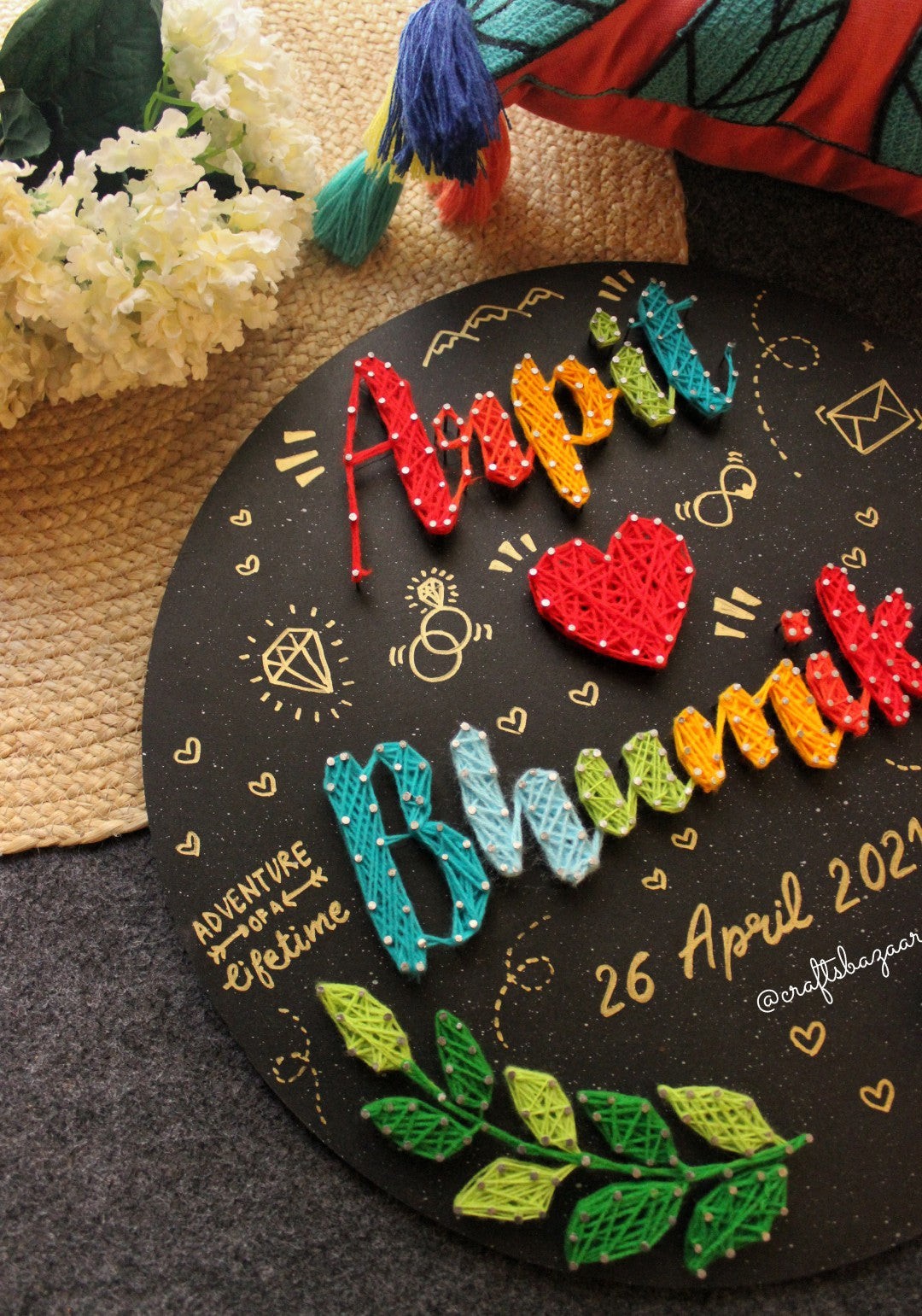 Personalised Colorful Round String Art Couple Name Board – Craftsbazaar