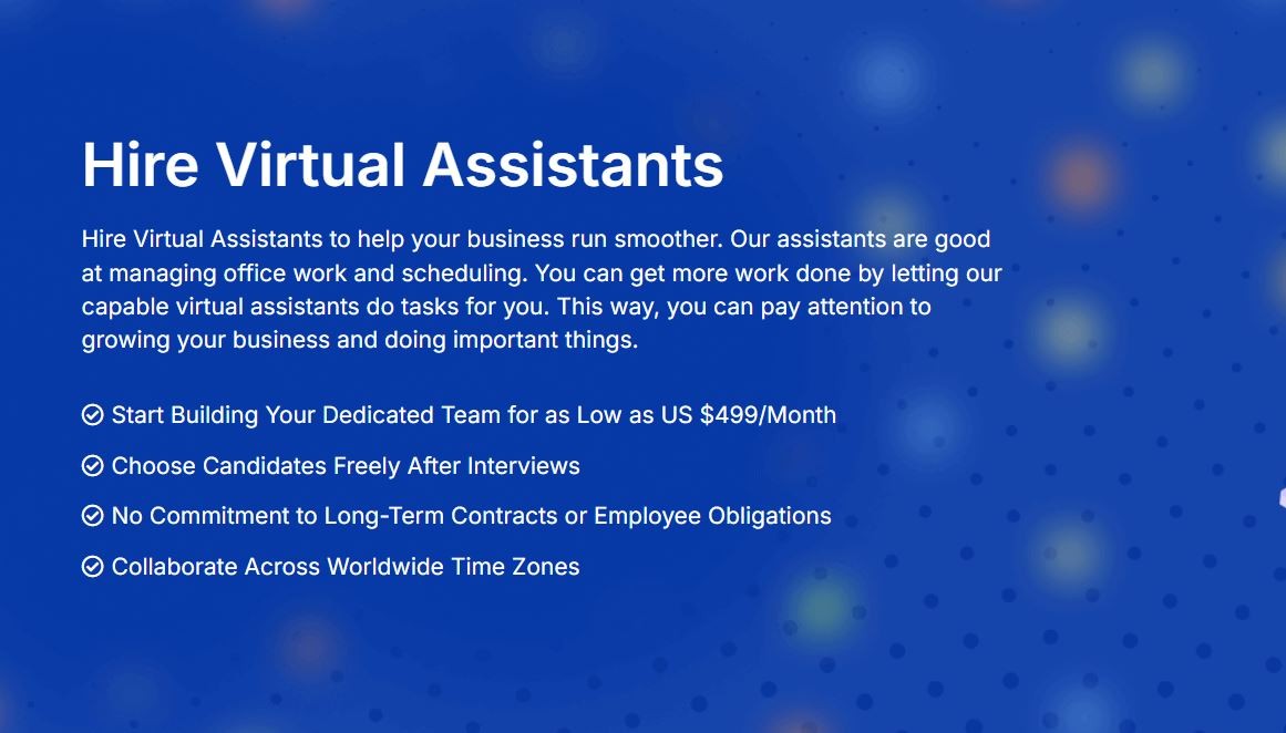 Are you a business owner seeking to streamline your operations and enhance your online presence? Look no further than MyVirtualTalent's exceptional virtual assistant services. You can hire virtual assistant India from our team of highly skilled professionals dedicated to providing top-notch support tailored to your specific needs. From managing your inbox and scheduling appointments to crafting compelling content and executing digital marketing campaigns, our virtual assistants can handle a wide range of tasks. https://myvirtualtalent.com/services/virtual-assistants/
