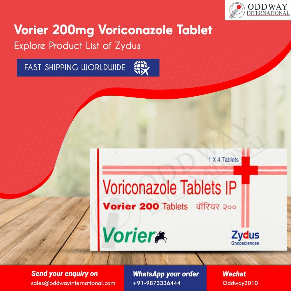 Buy Vorier 200mg Voriconazole Tablet at lowest price online. SHIPPING WORLDWIDE. Know Vorier 200mg cost, uses, generic alternative options with minimum prices f..