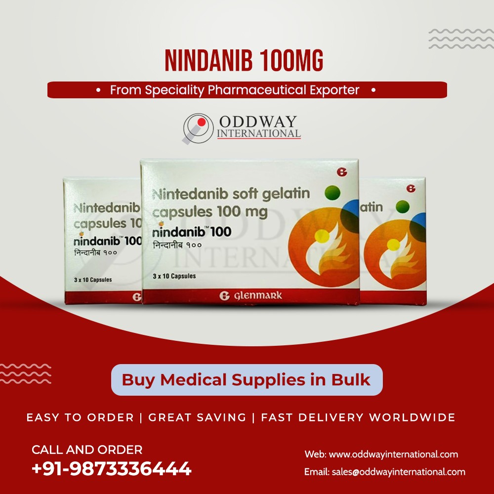 For cost-effective access to Nintib 150mg Tablet online, reach out to Oddway International. As a leading pharmaceutical exporter and wholesaler, Oddway offers competitive pricing for Nintib 150mg and also provide discounts on other nindanib brand name medicines. Contact them at sales@oddwayinternational.com or call +91-9873336444 to inquire about Nintadanib cost directly contact Oddway and buy Nintib 150 tablet online.