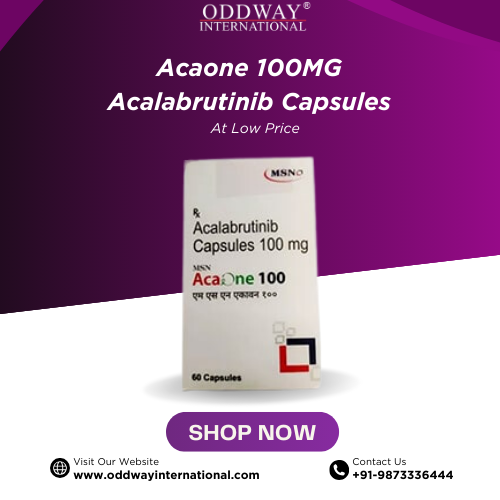 Oddway International is your trustworthy source for procuring Acaone 100MG Acalabrutinib Capsules at a budget-friendly price. This pharmaceutical wholesaler company ensures competitive pricing, and wide product range. With a commitment to quality, and a customer-centric approach, It stands out in delivering pharmaceuticals promptly & securely. Accessing essential medications, including Acaone 100MG is now easier & more affordable with Oddway.