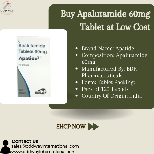 To place your order for apalutamide 60mg tablet, drop us a mail at sales@oddwayinternational.com. or visit