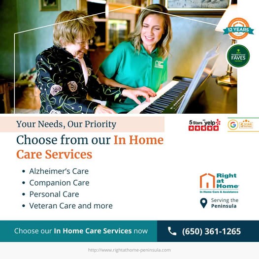 Right at Home Peninsula provides professional home care services for adults with disabilities in Palo Alto, CA. Their trained caregivers offer personalized support, including assistance with daily activities, mobility, and companionship, helping individuals maintain independence and comfort at home.