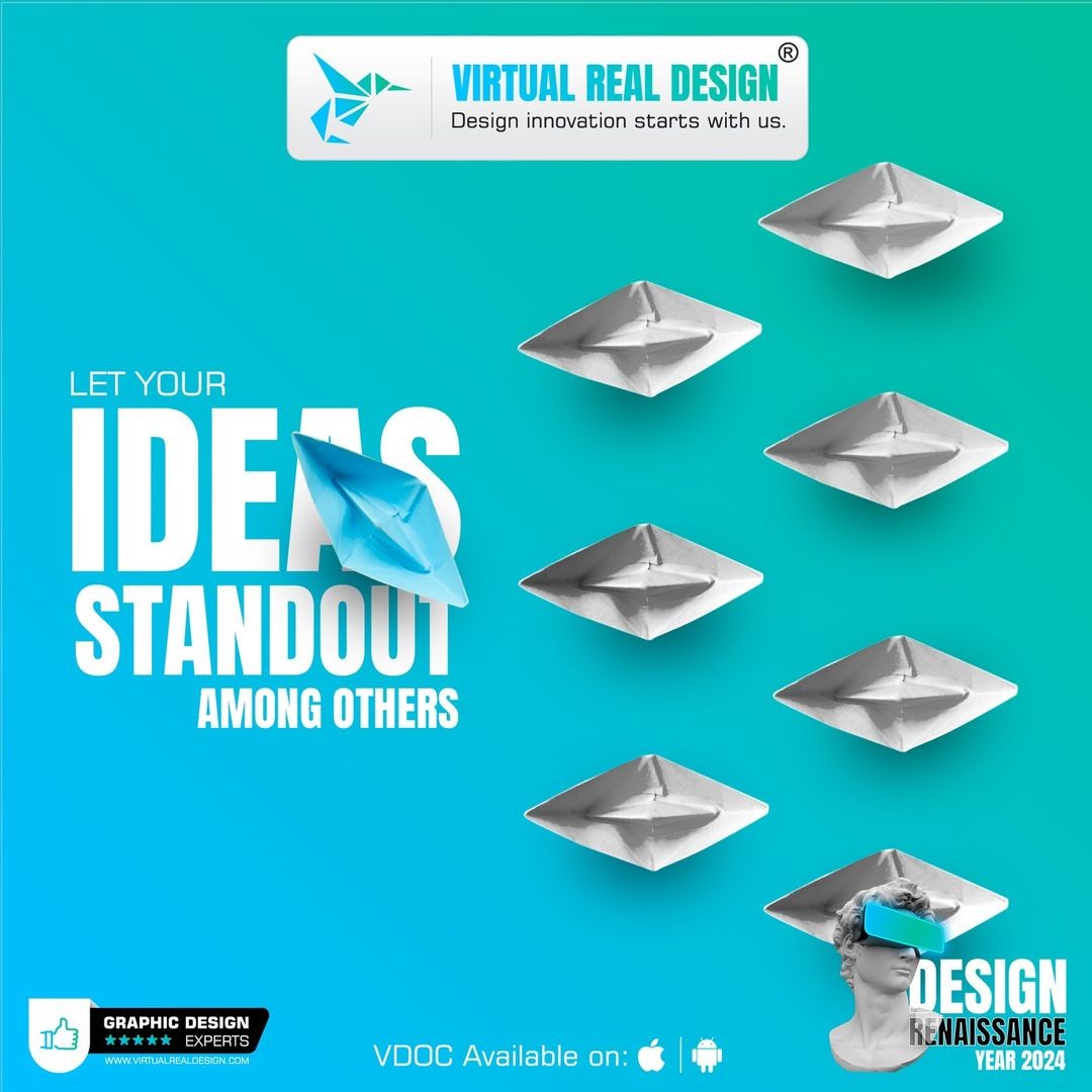 🌟 Dare to be different! Let your unique ideas stand out with Virtual Real Design. 🚀 #Innovation #DesignExcellence #StandOut #graphicDesign