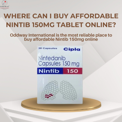 For cost-effective access to Nintib 150mg Tablet online, reach out to Oddway International. As a leading pharmaceutical exporter and wholesaler, Oddway offers competitive pricing for Nintib 150mg and also provide discounts on other nindanib brand name medicines. Contact them at sales@oddwayinternational.com or call +91-9873336444 to inquire about Nintadanib cost directly contact Oddway and buy Nintib 150 tablet online.