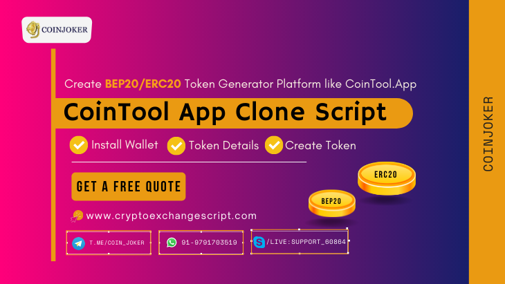 CoinTool App Clone Script helps to create BEP20/ERC20 token generator platform same as CoinTool.App. Coinjoker provides CoinTool App Clone Script which is ready-made and easy to deploy your own token generator platform with extensive features of CoinTool.App. By using our cointool app clone script, you can create the BEP20 token and ERC20 token in less than a minute.