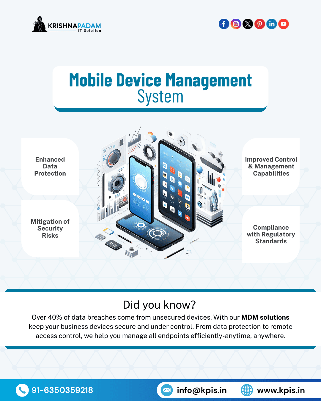 Over 40% of data breaches come from unmanaged devices. That’s why #MobileDeviceManagement (MDM) isn’t optional, it’s essential for business security and efficiency. At #KrishnaPadamITSolution, we go beyond off-the-shelf #MDM tools. We create custom #MDMsoftware tailored to your organization’s unique needs whether you’re managing a remote team, #BYOD device, or enterprise endpoints.