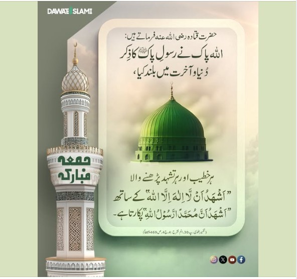 بے شک میرے نبی ﷺ کا ذکر ہر لمحہ بلند سے بلند تر ہو رہاہے. جمعہ مبارک
